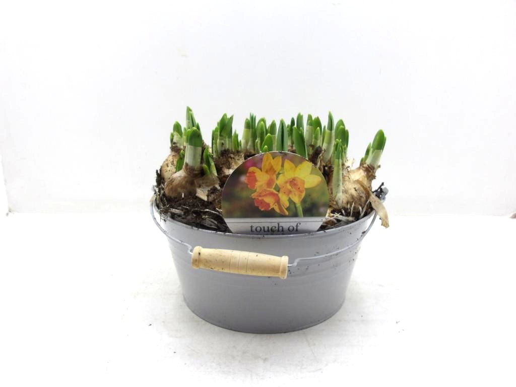 Narzissen in Blechschale grau