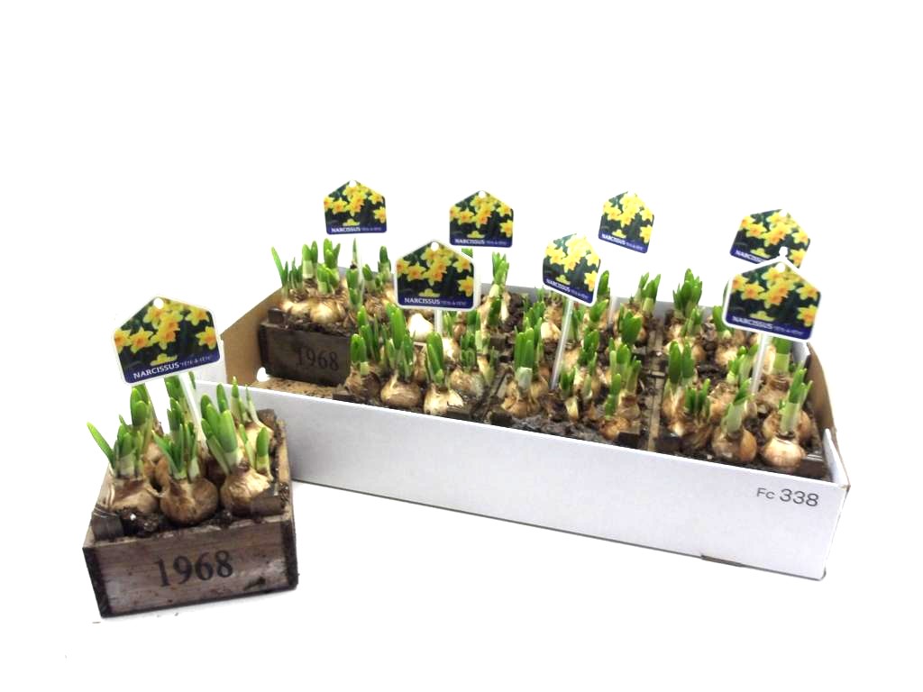 Narzissen in Holzkasten
